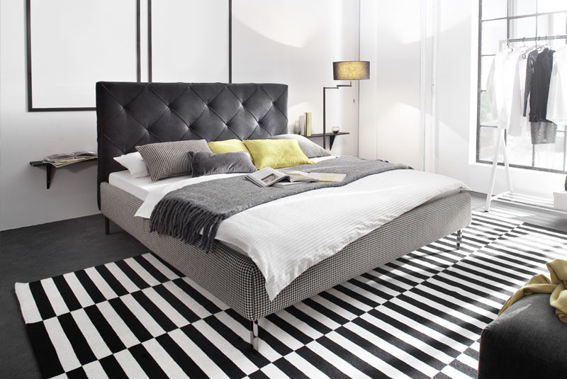 Everything has been thought of in the softly upholstered bed frame "Sixty": the fastening of the side cover with Velcro makes cleaning the bed particularly easy. The metal feet in black-chrome provide an even more high-quality appearance of the bed frame - and it is available in a large cover selection in leather and fabric. The side cover and the back cover can be freely combined.