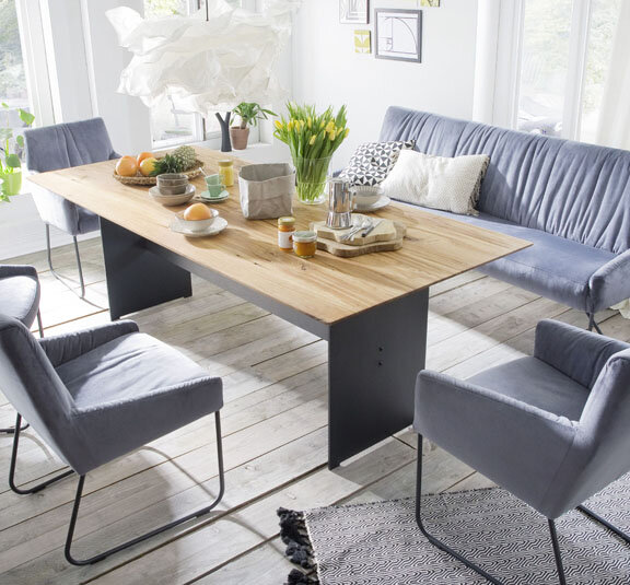 This table system offers a variety of table options in the best and most durable quality with table tops in oak or in walnut. In addition, different dimensions, table edges and feet are available.