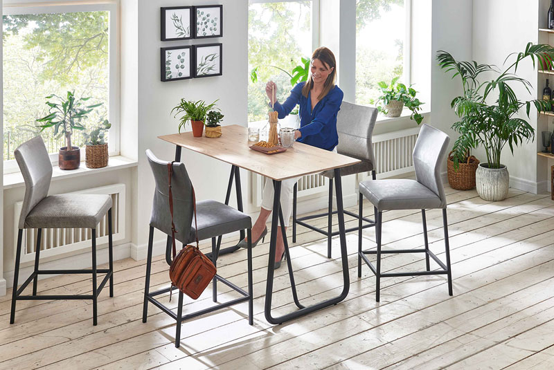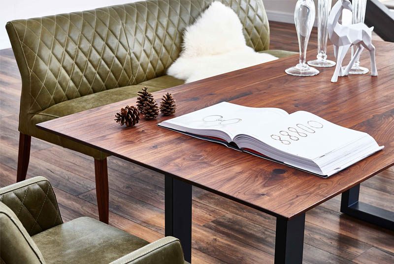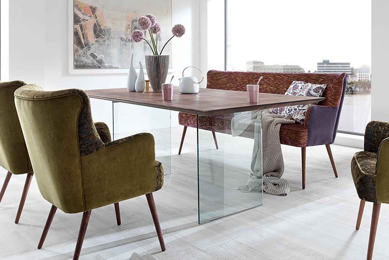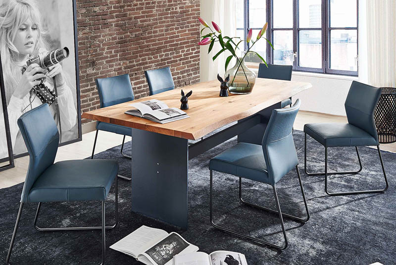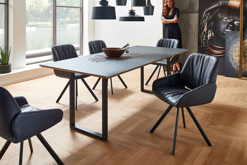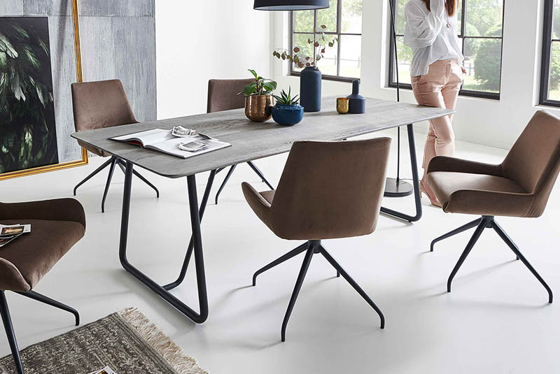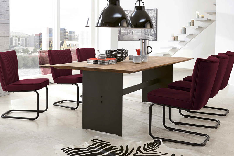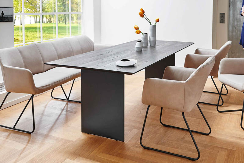 This dining table system offers you many combination options in stylish design. From the different table tops, wood colors and legs you put together a model that fits exactly into your interior. And through the optional extension plate with 50 cm extension you always have enough space for your guests.