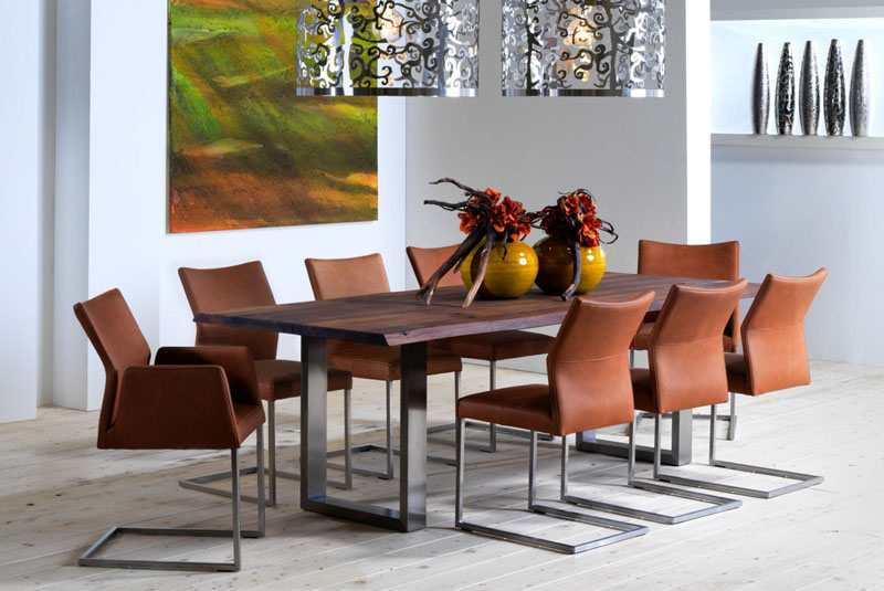 The Lennox cantilever chair is available both with and without armrests. There is a wide choice of fabric or leather.