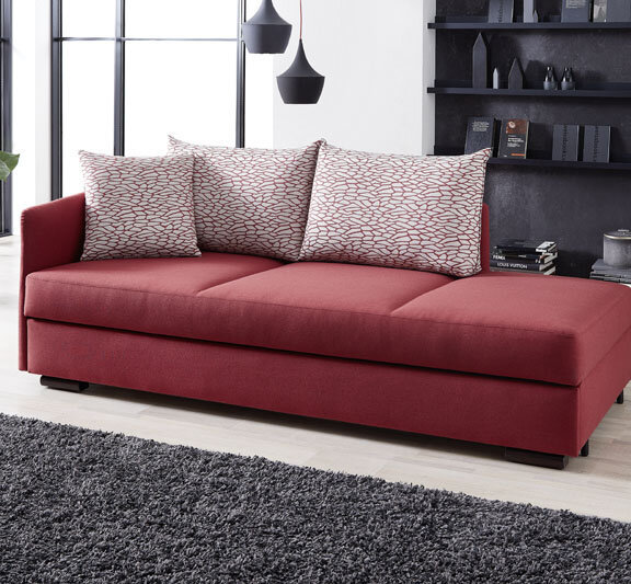 Comfortable sofa bed with large lying surface, cold foam mattress and slatted frame, available in many covers.