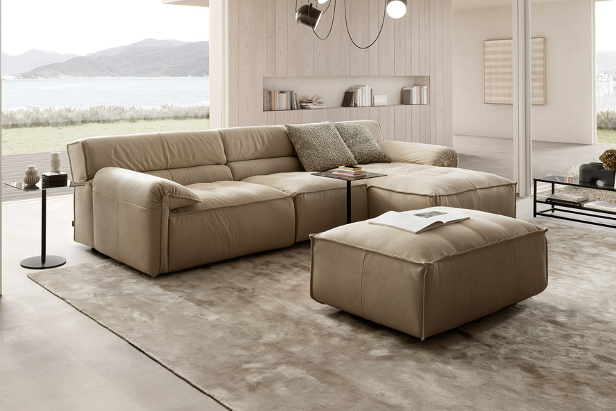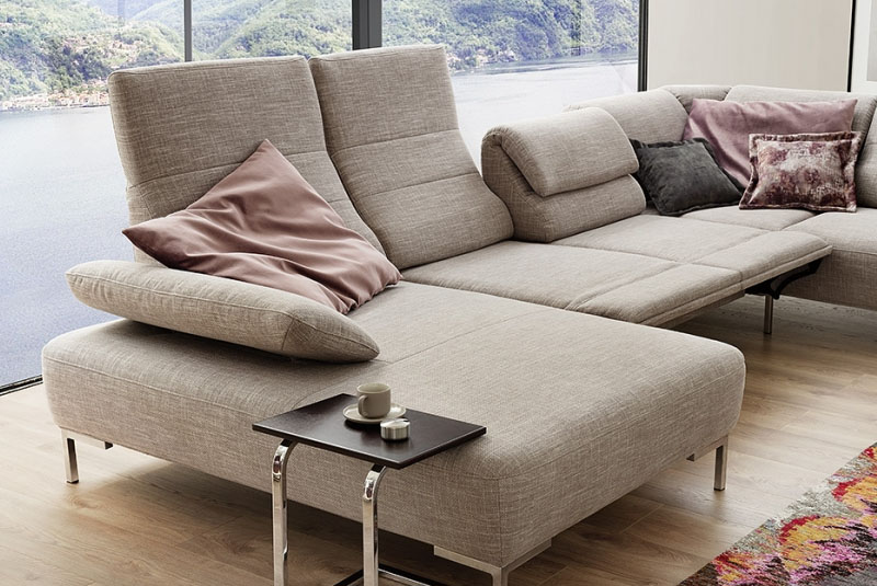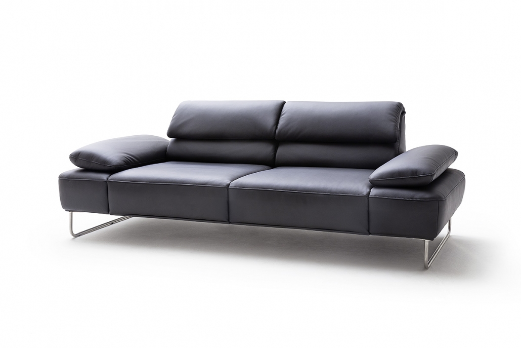 The Vola sofa is a true centerpiece for your living room. Generous seating and elegant, wing-shaped armrests create a touch of extravagance. Your choice of premium leather or fine fabric, combined with decorative reverse seams, sets a harmonious and luxurious tone. Coordinated accessories complete the look perfectly.