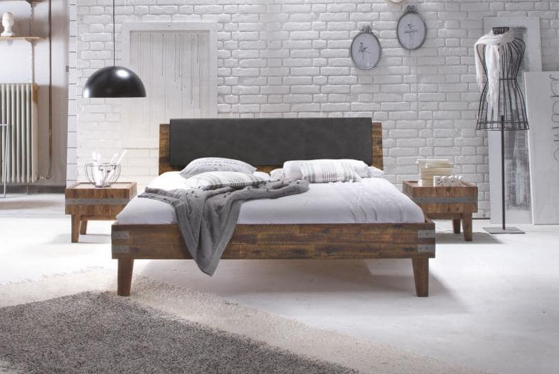 Industrial design for your bedroom: the bed frames in solid acacia with offset wooden elements provide a unique bed design, especially in combination with metal feet and fabric headboards. We look forward to advising you in our furniture store in Berlin-Steglitz!