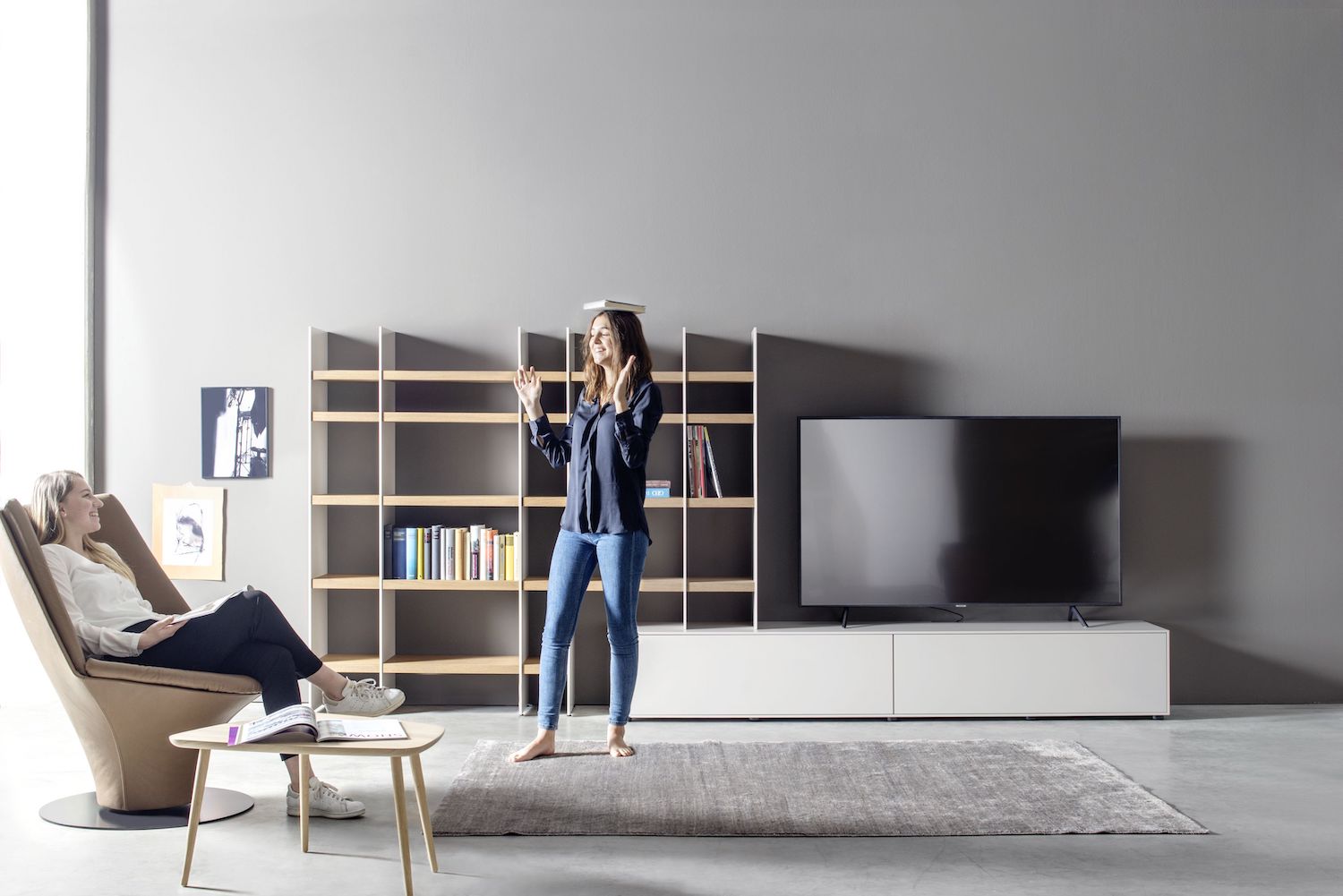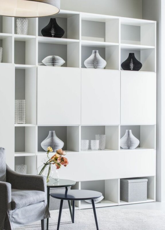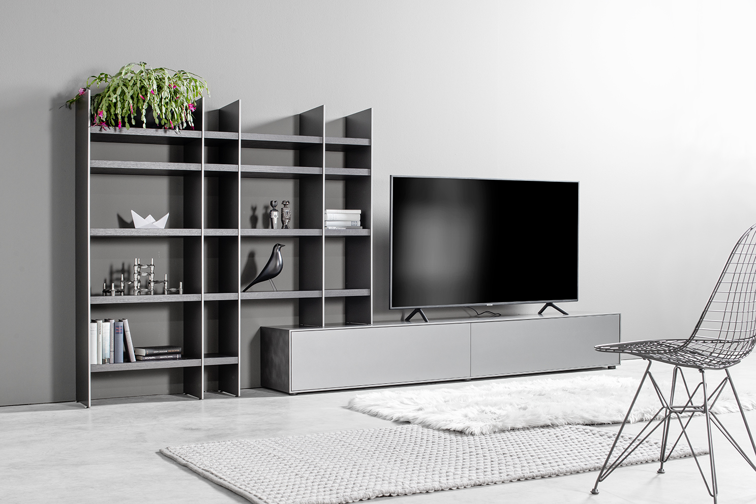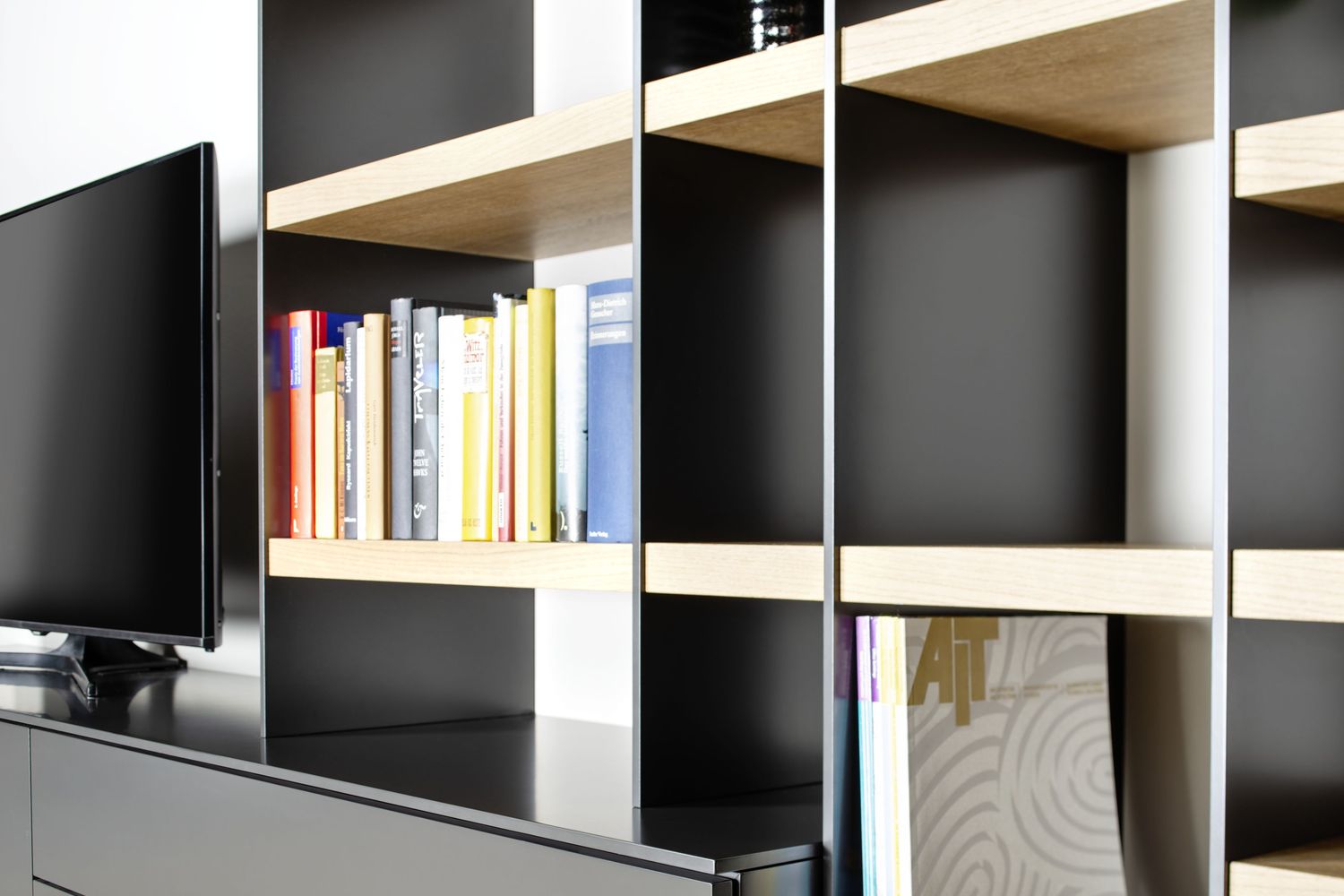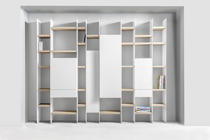 One of the highlights is the "Scala" shelving series with particularly narrow frames (10 mm side panels and 39 mm shelves), high stability, invisible shelf supports and can be planned with carcase elements - available in many wood and lacquer variants and dimensions as desired.