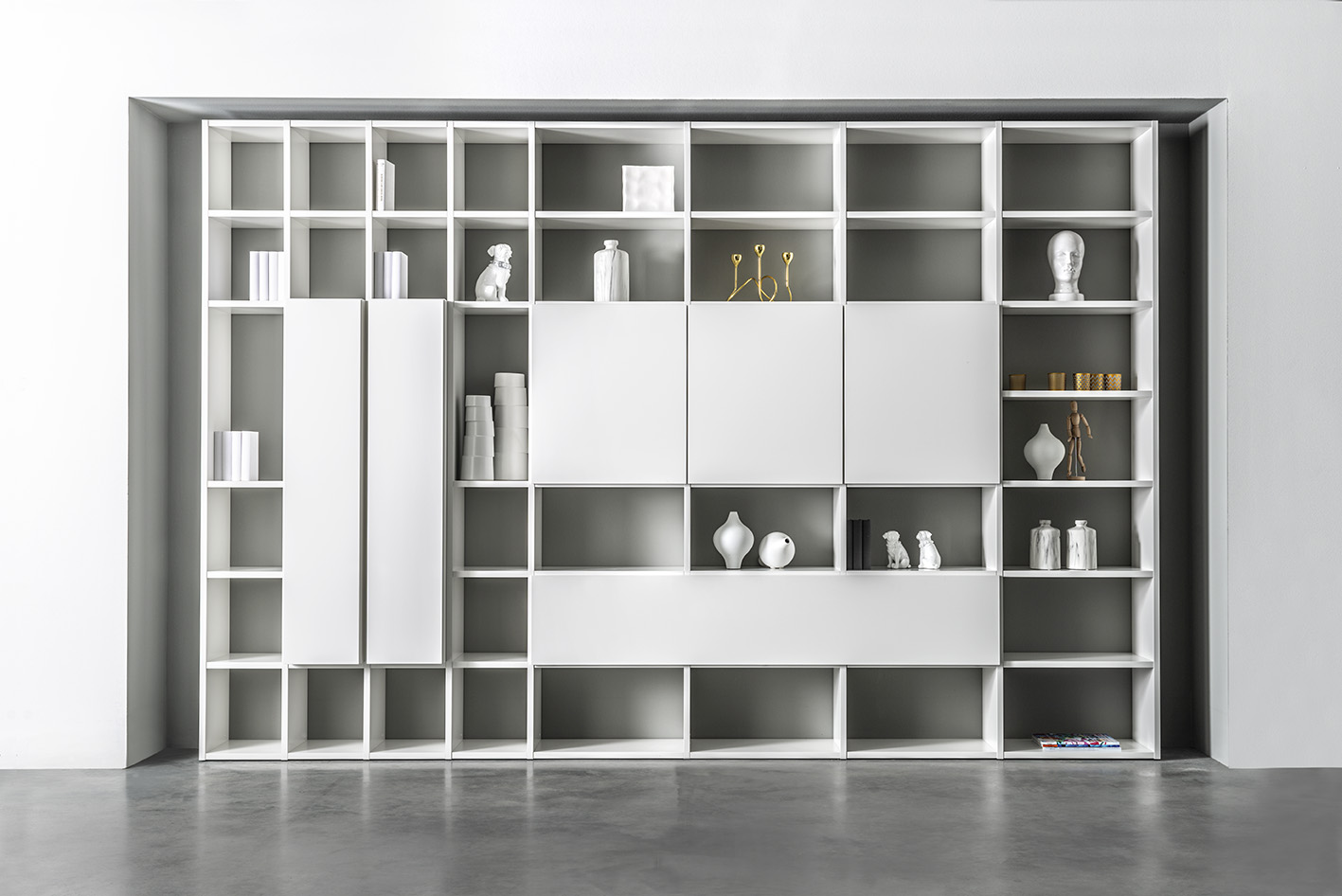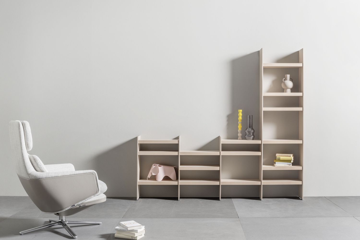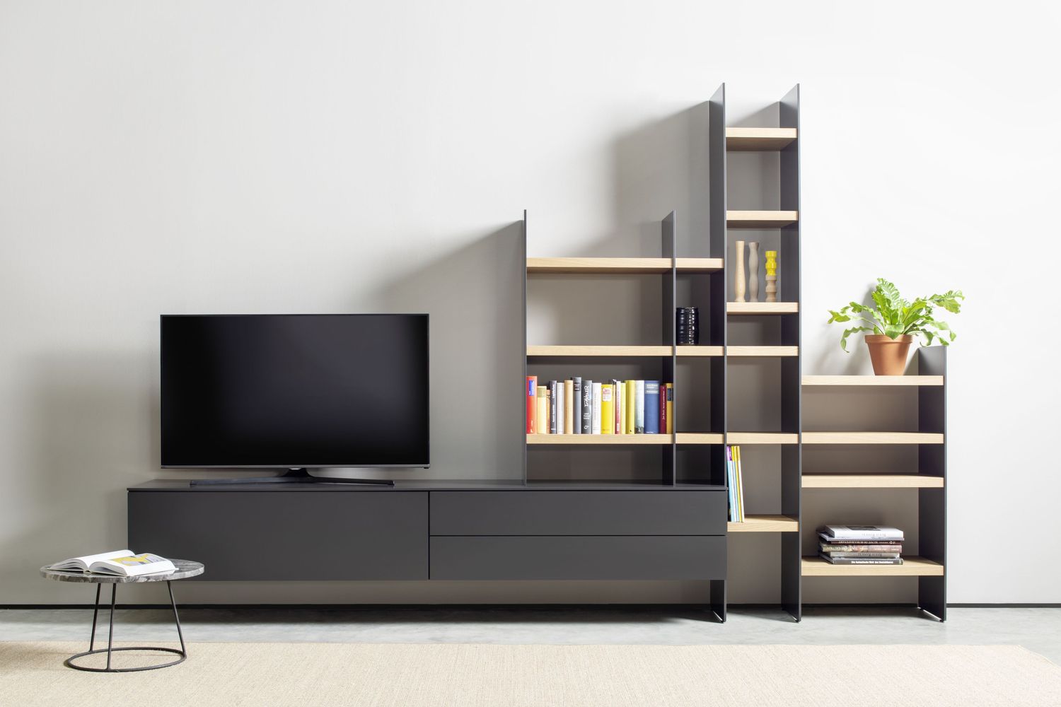 One of the highlights is the "Scala" shelving series with particularly narrow frames (10 mm side panels and 39 mm shelves), high stability, invisible shelf supports and can be planned with carcase elements - available in many wood and lacquer variants and dimensions as desired.