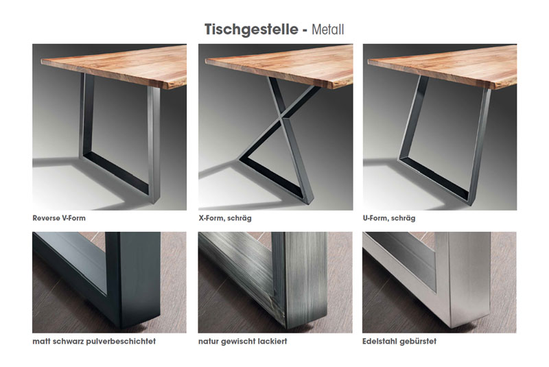 Back to nature: the organic shapes of the solid tree-edge table "Forest" bring a particularly cozy mood into your dining room. Simply choose from one of the three different wood colors and select as feet either wooden cheeks or one of the metal frames in various shapes and color finishes.