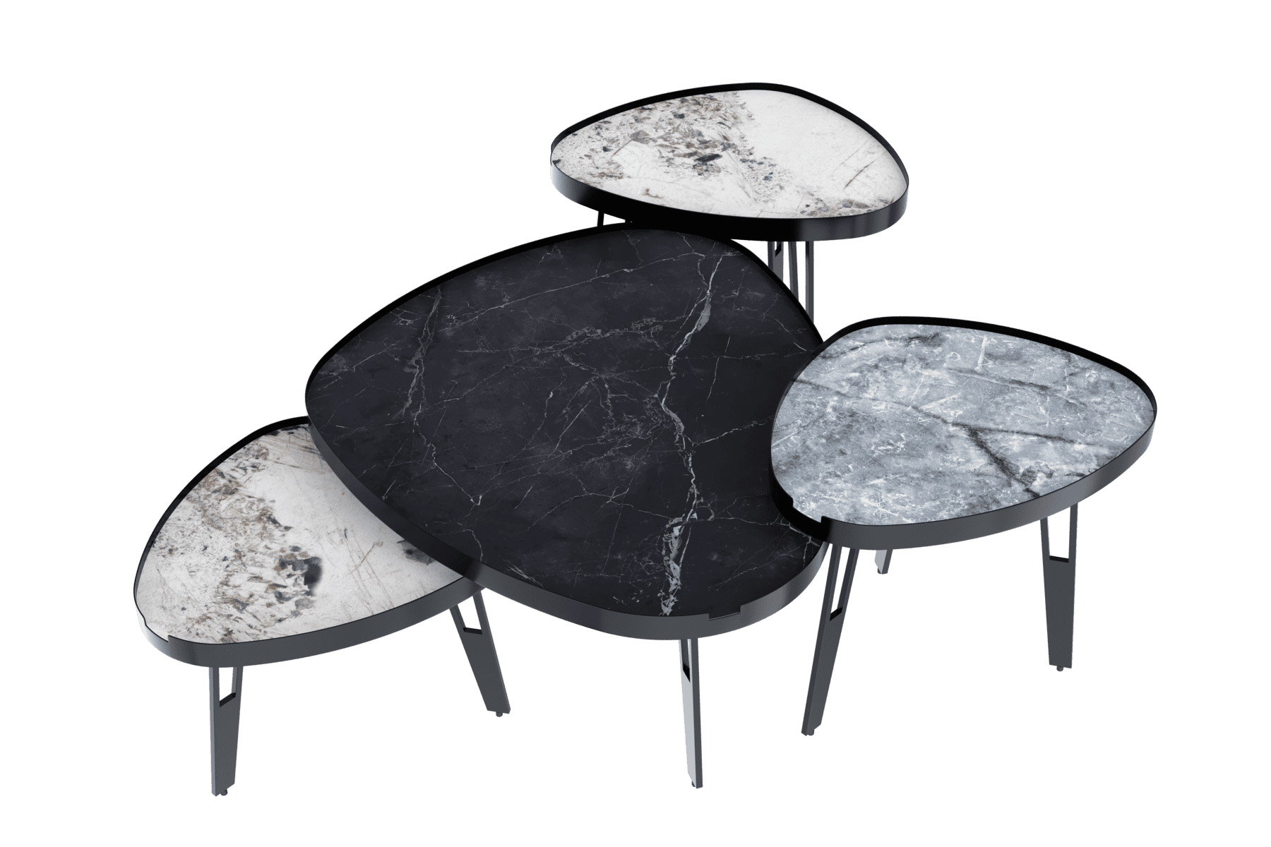 Der Beistelltisch Capri ist eine elegante Ergänzung für jedes Wohnzimmer. Mit einer Tischplatte aus 11 mm Vollkeramik in Marmor-Optik, erhältlich in den Farben Beige, Schwarz und Blau, bringt er eine luxuriöse Note in Ihr Zuhause. Der 4 cm hohe Stahlgürtel, wahlweise in Bronzeoptik oder mattschwarzer Lackierung, sorgt für Stabilität und ein modernes Erscheinungsbild.