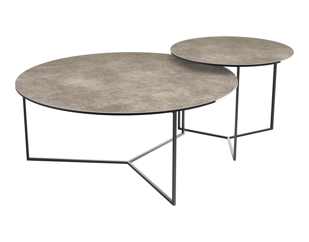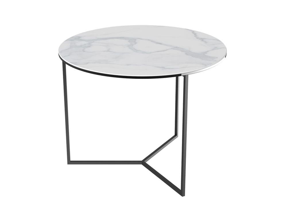 Der kleine Beistelltisch Venezia mit einem Durchmesser von 55 cm kann in einer Vielzahl von Keramikfarben oder mit Glasplatte geliefert werden.
