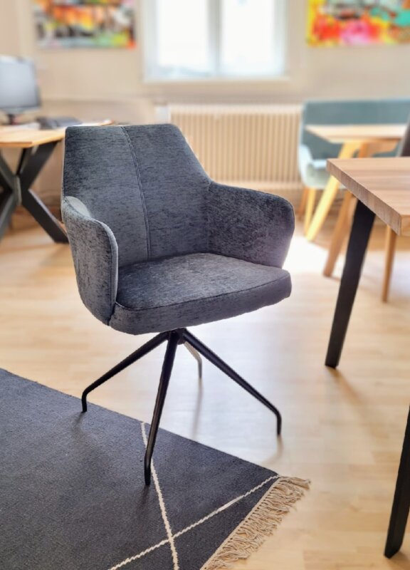Modern, bis zu 360 Grad drehbar, in verschiedenen Fuß- und Bezugsvarianten bestellbar: Bestellen Sie jetzt den eher fest gepolsterten Stuhl Tigio in unserem Möbelhaus in Berlin-Steglitz!