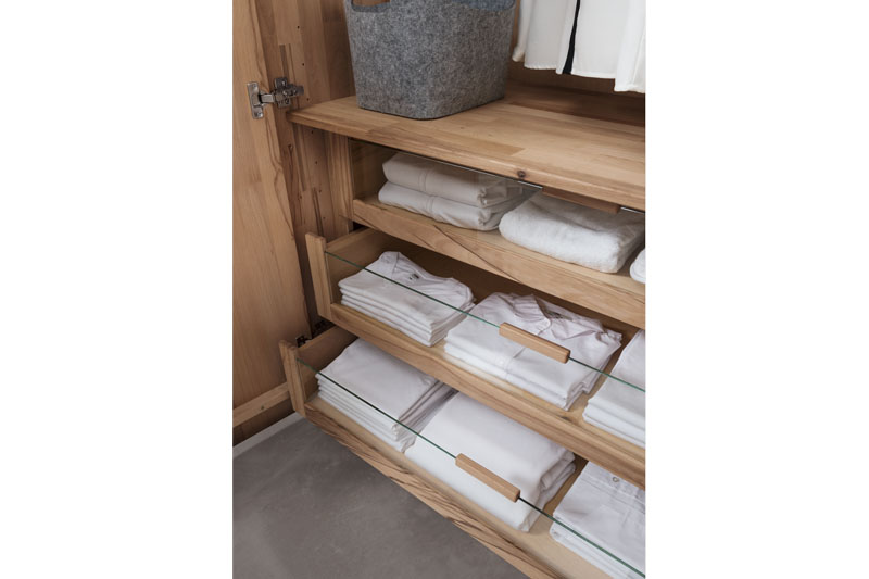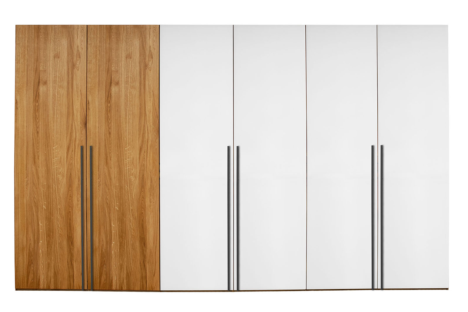 Ein Schlafzimmer sollte ein Ort der Ruhe und Geborgenheit sein. Mit unserem Massivholz-Schrankprogramm bringen Sie die wohltuende Natürlichkeit von Massivholz in Ihr Zuhause. Diese formschönen Schränke, wahlweise mit Dreh- oder Schwebetüren, sind aus nachhaltiger Kernbuche oder Wildeiche gefertigt und mit umweltfreundlichen Ölen behandelt. Die vielseitigen Inneneinteilungen und Erweiterungsmöglichkeiten machen es zu einem flexiblen und langlebigen Möbelstück, das sich Ihrem Lebensstil anpasst.
