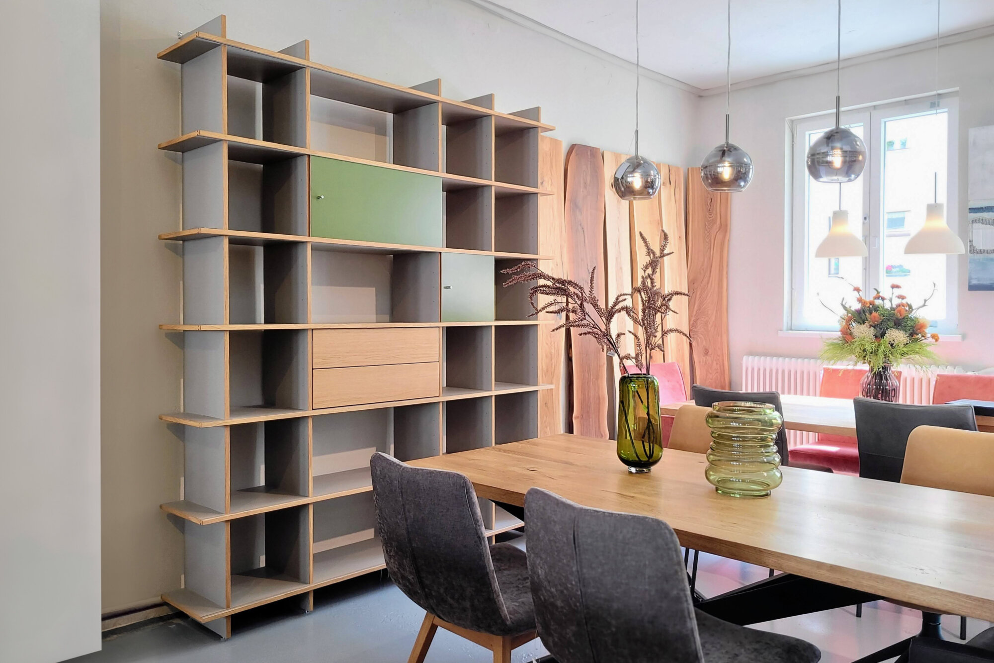 Schauen Sie bei uns vorbei. Wir konfigurieren gerne Ihr individuelles Regalsystem in unserem Möbelhaus in Berlin-Steglitz.