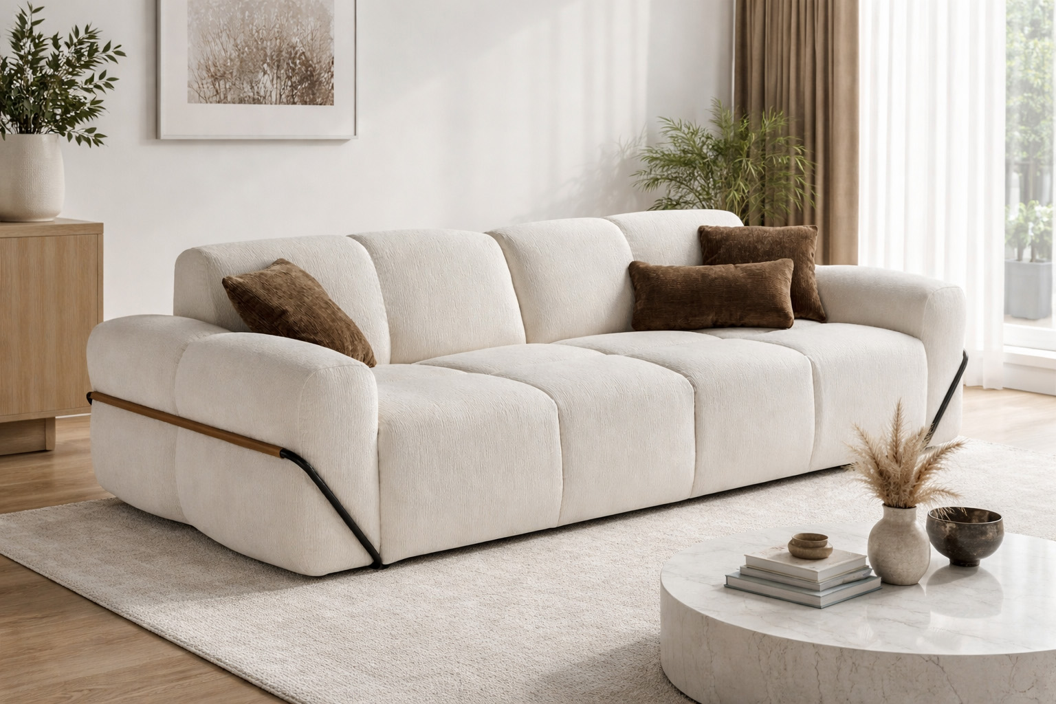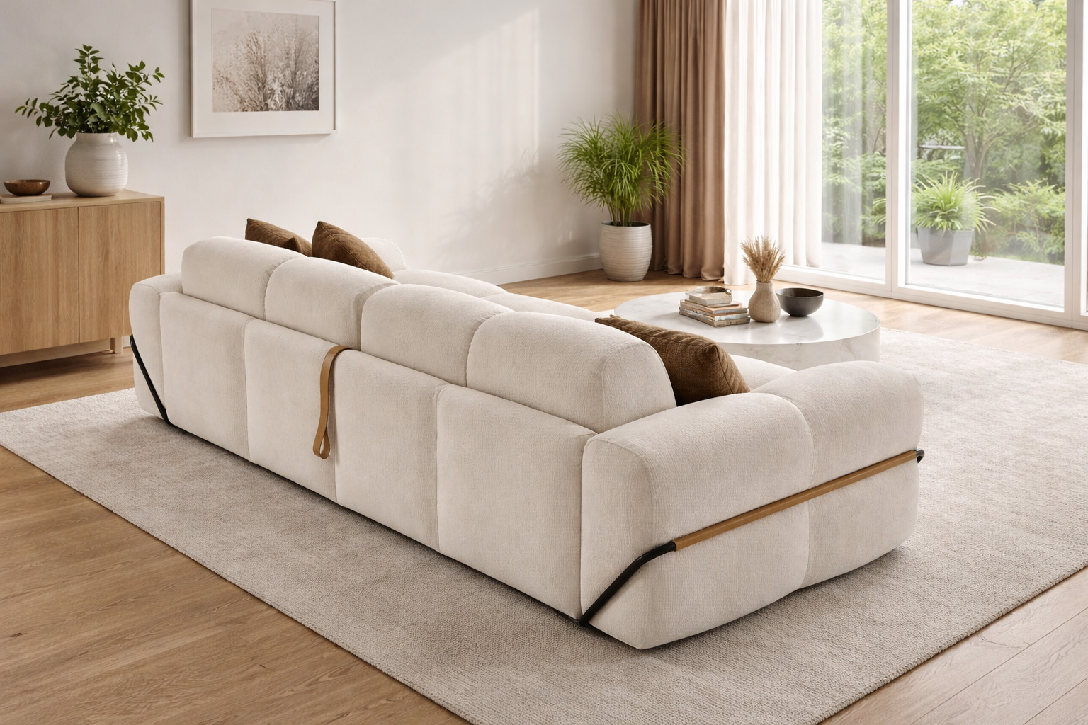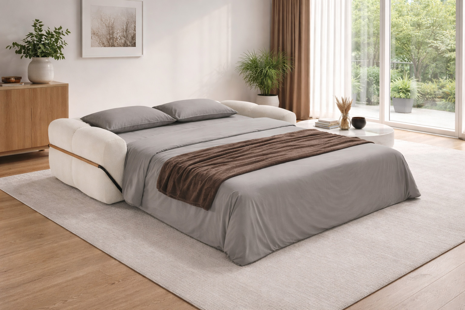 Wie gemacht für Tage, an denen das Zuhause zum Rückzugsort wird. Die großzügige Sitzfläche lädt ein, sich einfach fallen zu lassen. Abends wird daraus mit wenigen Handgriffen ein vollwertiges Bett – ohne Kompromisse beim Liegekomfort. Die Polsterung ist angenehm weich, der Bezug vollständig abziehbar. Kleine Details wie die Armlehnen mit Leder-Einsatz sorgen für Charakter.
