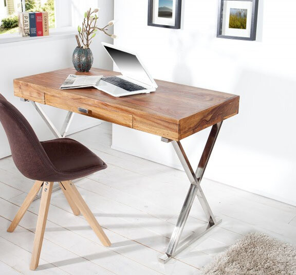 Machen Sie sich den Alltag ein bisschen schöner mit dem Schreibtisch „Cross“. Das moderne Design aus Massivholz und Chrom, die Platte mit 120 x 75 cm und die Schublade sorgen für angenehmes Arbeiten.