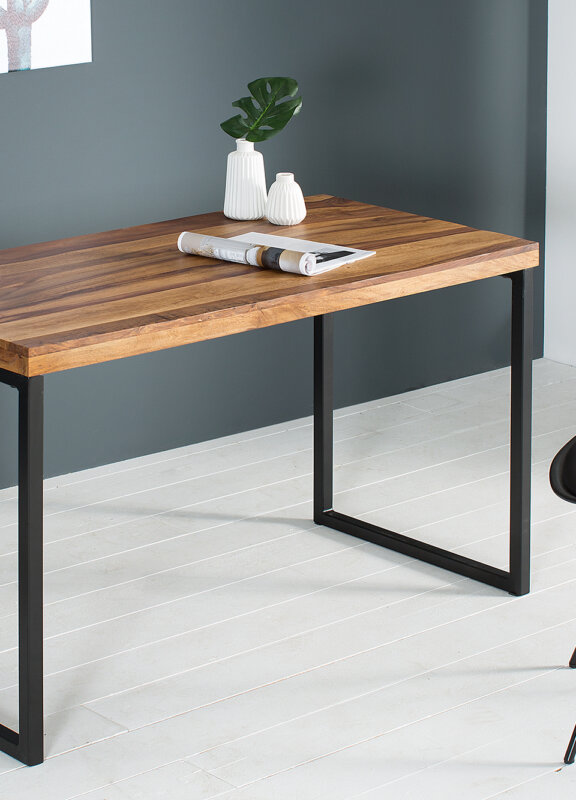 Der Schreibtisch Work ist ein zeitloser und moderner Schreibtisch, der aus einer massiven Holzplatte und einem schwarzen Metall-Gestell gefertigt ist. Das hochwertige Sheesham-Holz verleiht dem Schreibtisch eine elegante Optik und sorgt für Langlebigkeit.