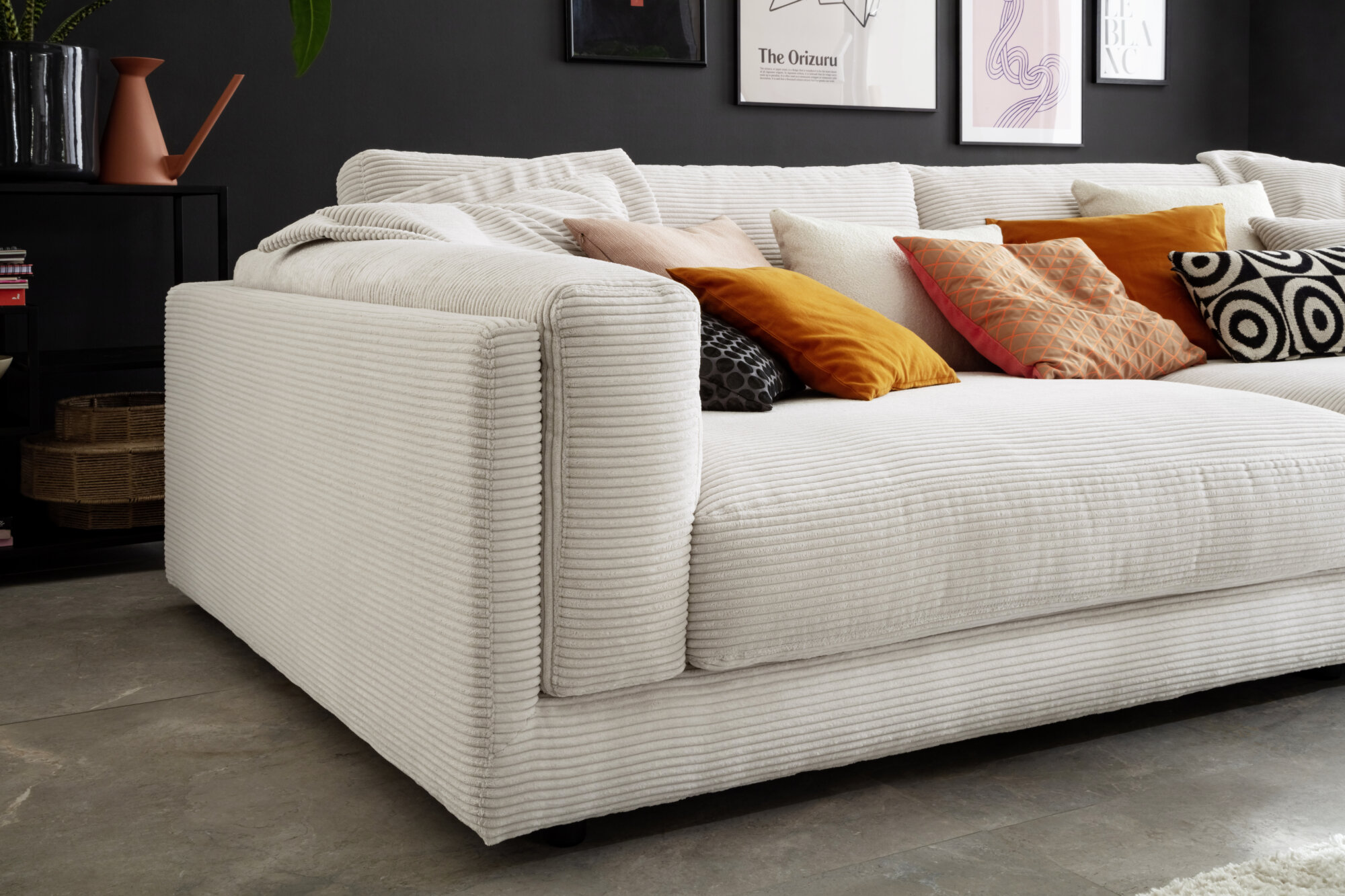 Tauchen Sie ein in unvergleichlichen Komfort mit diesem eleganten Sofa. Die großzügigen Sitzflächen und weichen Rückenkissen laden zu entspannten Stunden ein. Das Sofa Kensington bietet eine flexible Gestaltung mit seinen vielseitigen Kombinationsmöglichkeiten und hochwertigen Bezugs-Materialien aus Stoff oder Leder, die langlebig und pflegeleicht sind.