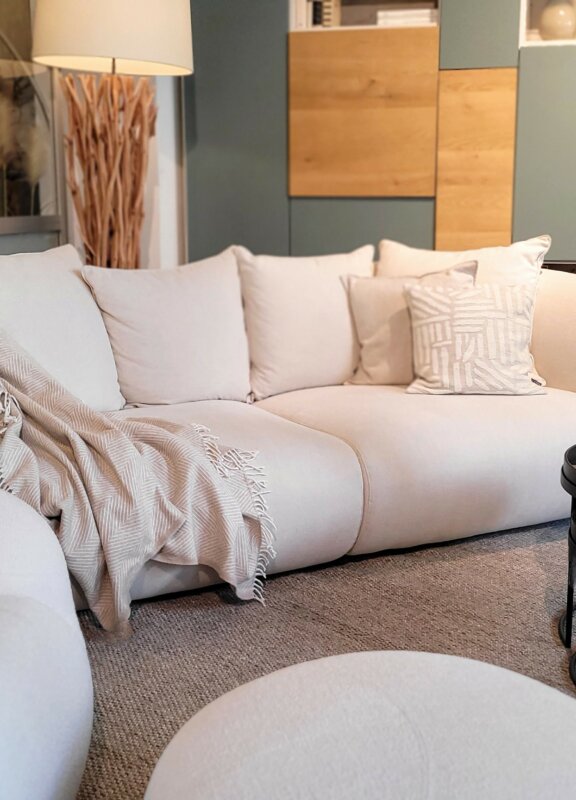 Das modular aufgebaute Sofa überzeugt uns durch seine organischen Formen, tiefen Sitzflächen und weichen Dekokissen. Die geschwungenen Armlehnen und eine Vielzahl an Modulen wie Einzelsitze, Ecken, Chaiselongue und Hocker bieten nahezu unbegrenzte Kombinationsmöglichkeiten. Jedes Modul kann auch einzeln genutzt werden, da alle Seiten mit Stoff bezogen sind.