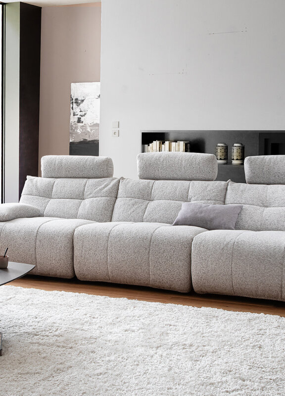 Dieses Sofa verbindet durchdachtes Design mit maximalem Komfort. Die motorische Relaxfunktion lässt Sie mühelos in eine entspannte Position gleiten, während die sanfte Polsterung und der angenehme Stoff für ein rundum behagliches Gefühl sorgen. Wählen Sie die Module so, wie es für Sie am besten passt.