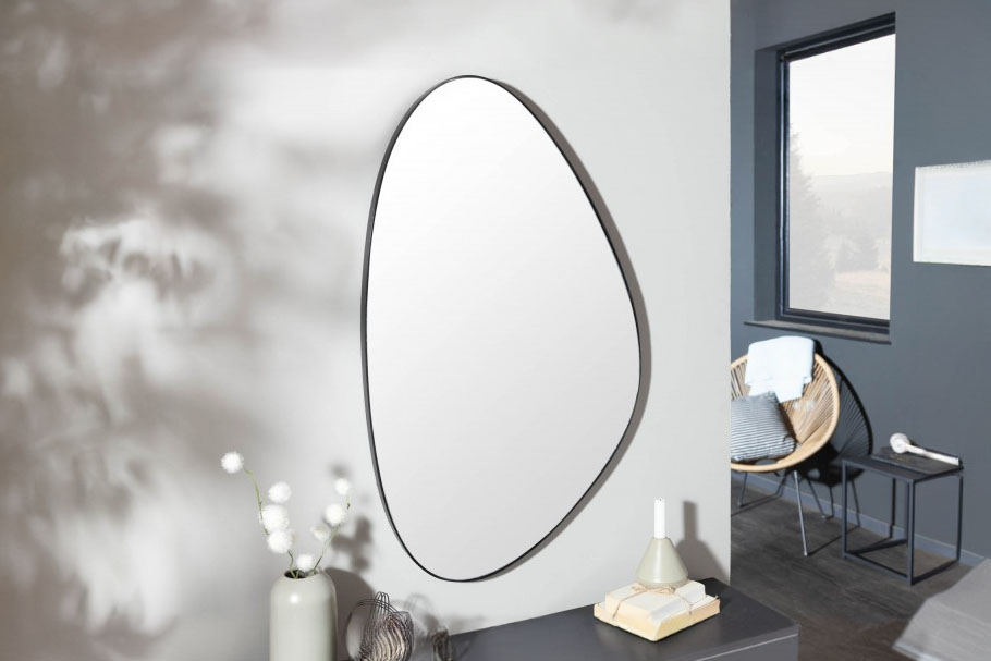Ein Blickfang für jede Wand: Der Wandspiegel Noemi überzeugt durch seine außergewöhnliche Form und den schlichten, schwarzen Rahmen. Perfekt, um Ihrem Zuhause eine individuelle Note zu verleihen und gleichzeitig für mehr Licht und Raumgefühl zu sorgen.