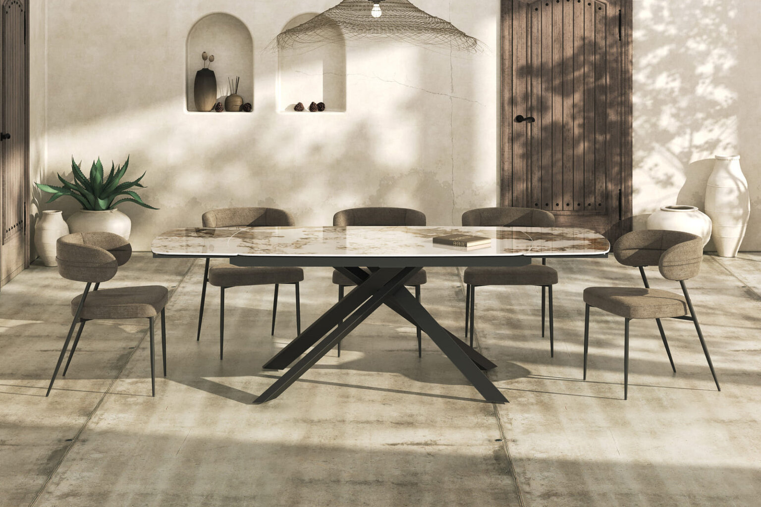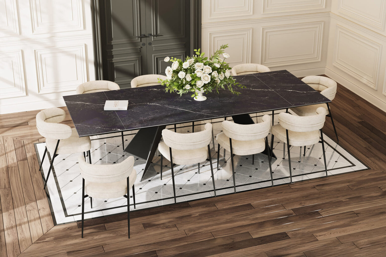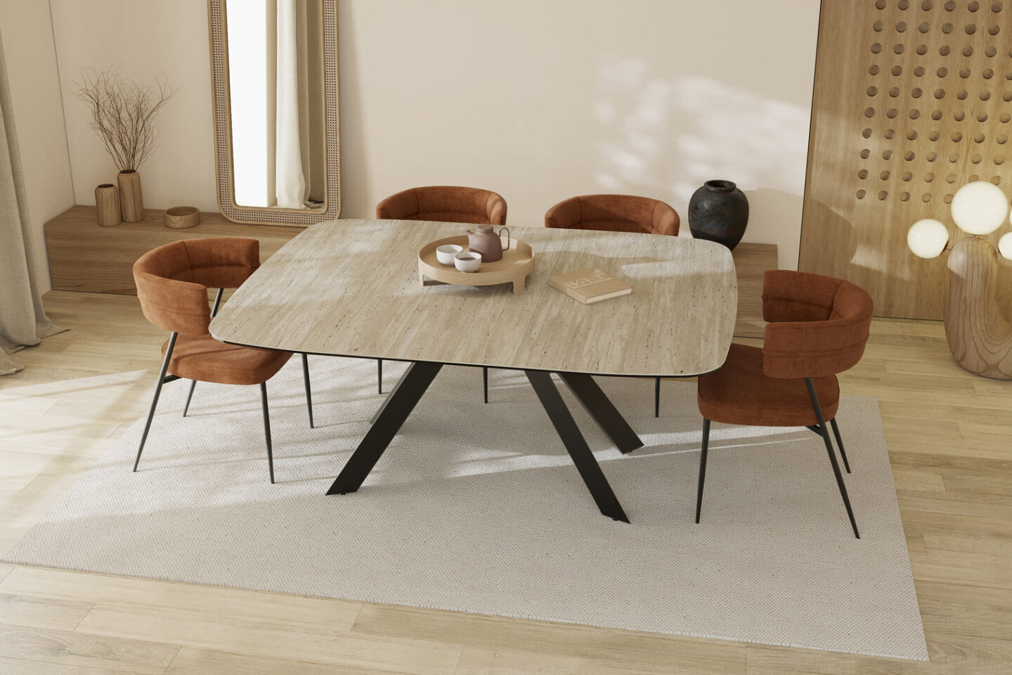 Der Stuhl Londres bietet durch die rundum gepolsterte Rückenlehne mit seitlicher Stütze einen angenehmen Sitzkomfort – auch über längere Zeit hinweg. Die Sitzfläche ist fest gepolstert und sorgt für stabiles, bequemes Sitzen, ideal für Essbereiche oder das Home Office. Das Gestell besteht aus pulverbeschichtetem, matt schwarzem Stahl und steht dank der schmal zulaufenden Beine stabil auf jedem Boden. Der pflegeleichte Stoffbezug ist nach OEKO-TEX® Standard 100 zertifiziert und hält mit einem Martindale-Wert von 60.000 auch starker Beanspruchung stand. Beratung zu Farben und Varianten erhalten Sie direkt in unserem Design-Möbelhaus in Berlin-Steglitz.