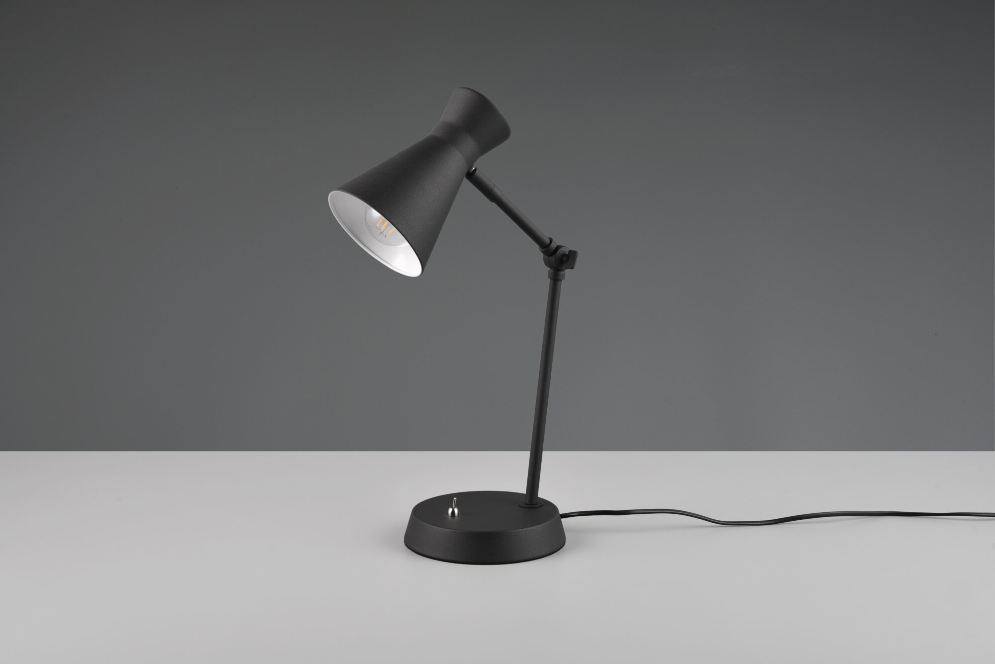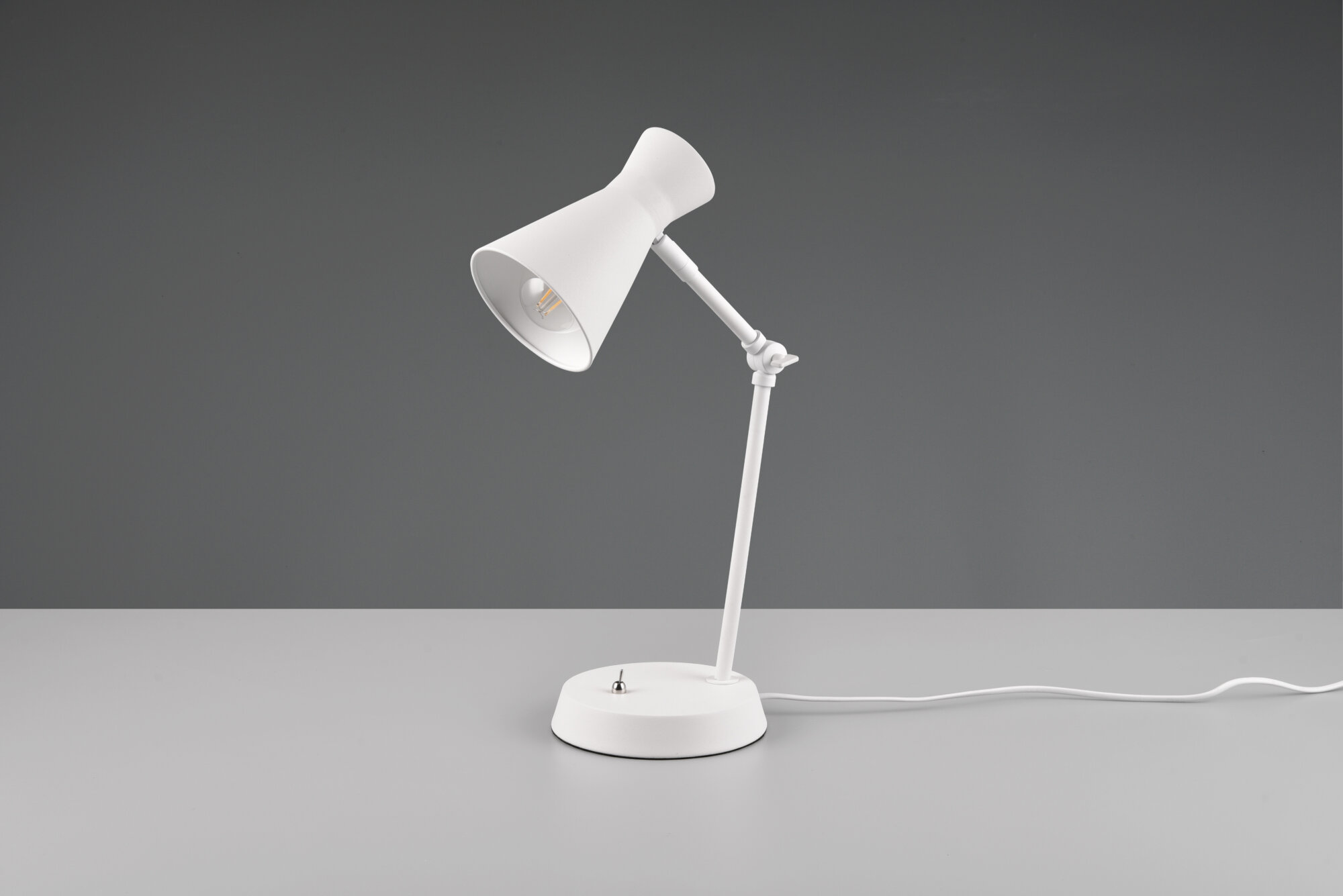 Eine klare Formensprache und durchdachte Funktionalität machen diese Tischleuchte zu einem stilvollen Begleiter für Ihren Wohn- oder Arbeitsbereich. Ob auf dem Schreibtisch oder als dezente Nachttischlampe – sie sorgt für gezieltes Licht genau dort, wo Sie es benötigen. Der Schalter am Fuß der Leuchte ermöglicht eine einfache Bedienung, während das matte Finish in Schwarz oder Weiß moderne Wohnkonzepte perfekt ergänzt. Kombiniert mit einem energiesparenden LED-Leuchtmittel wird diese Leuchte nicht nur funktional, sondern auch nachhaltig.